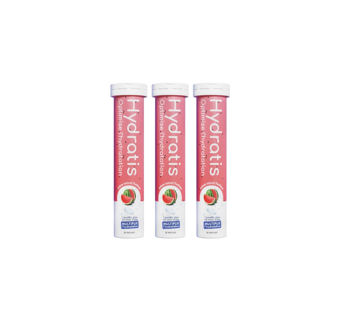 Pastilles Hydratation Electrolytes - Pastèque - Améliore l'Hydratation et Favorise l'Énergie - Formule Isotonique - Sport, Récupération, Bien-être - 3 tubes (60 Pastilles)